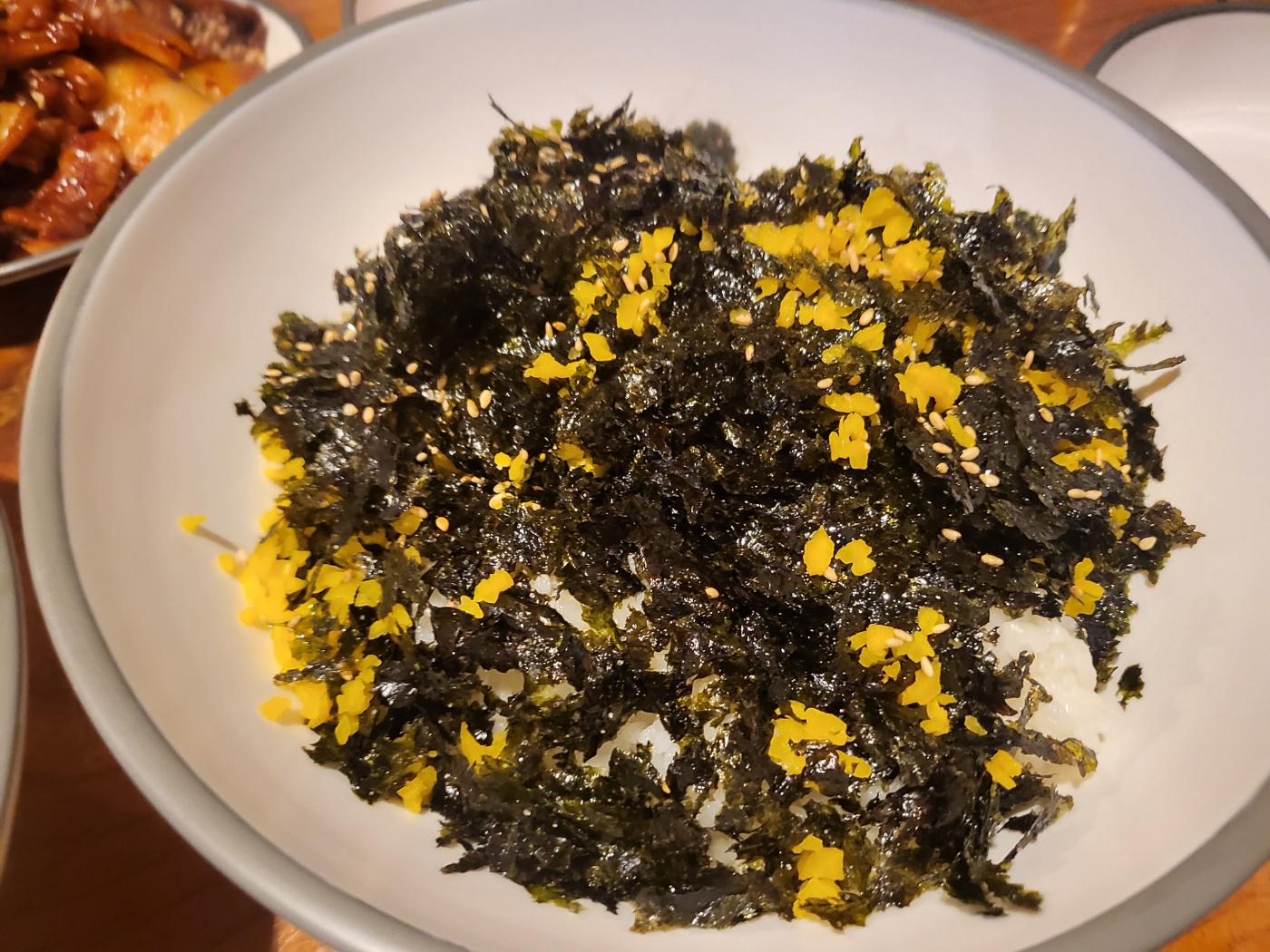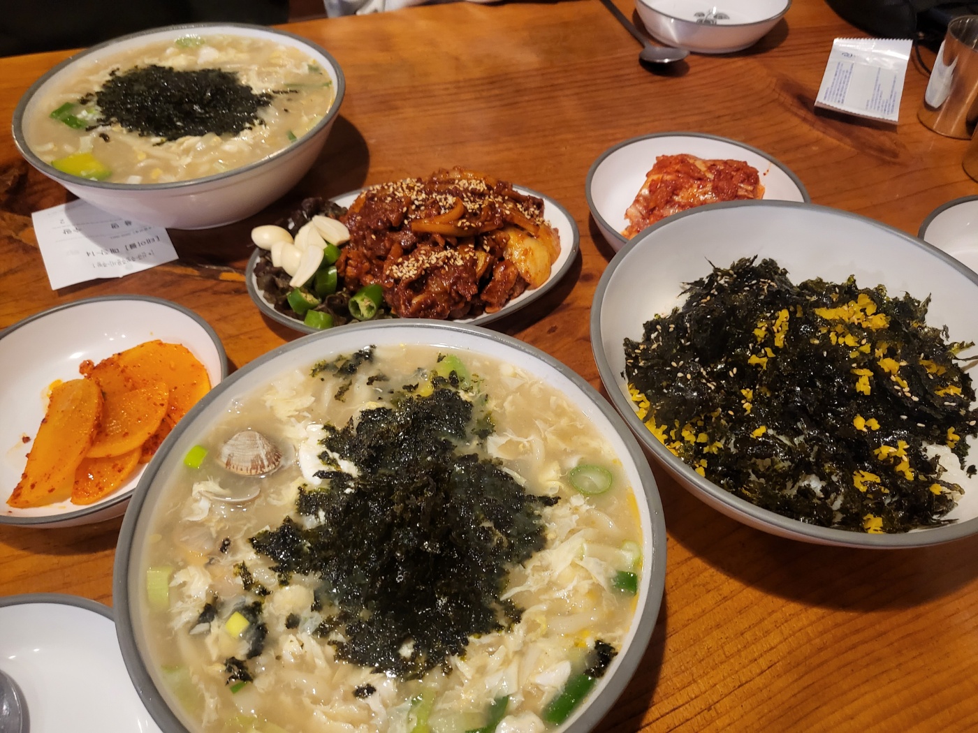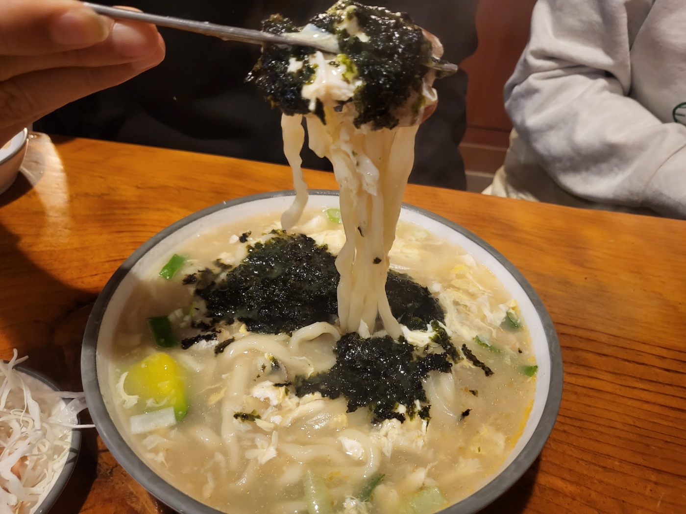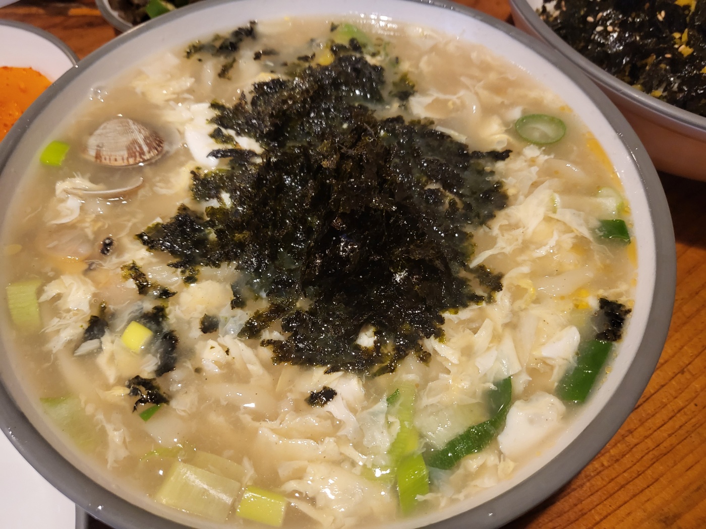 원래 손칼국수 전문집인만큼 육수가 끝내줍니다. 약간 걸쭉하며 진한 육수가 김가루와 섞여 깊은 맛을 내네요.